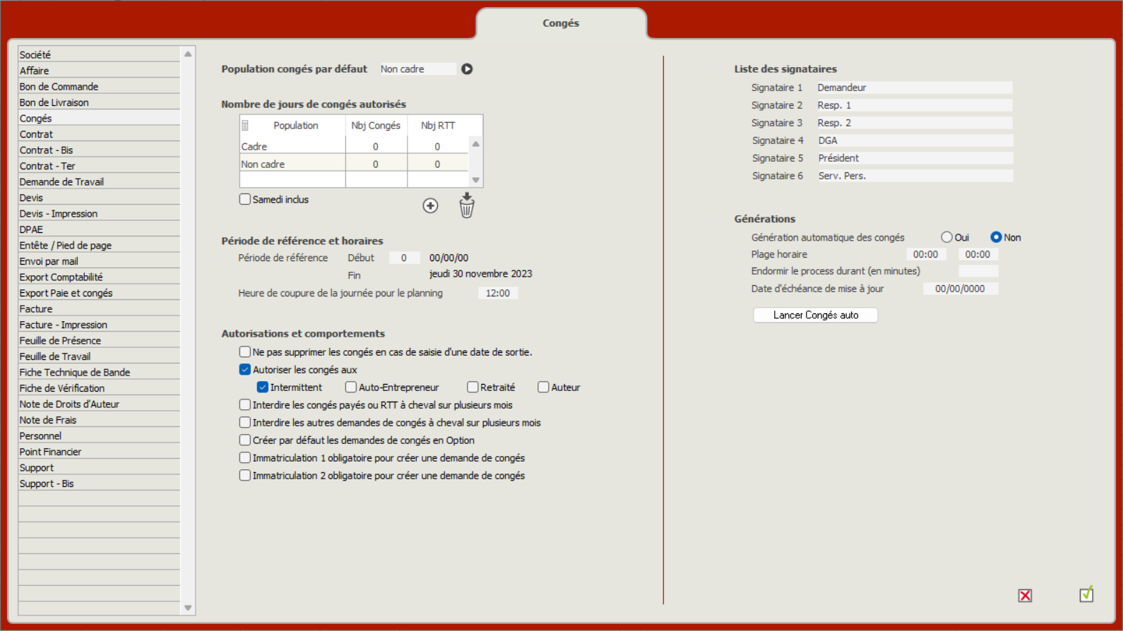 Génération automatique des congés : choisir oui ou non pour la générations automatique des congés