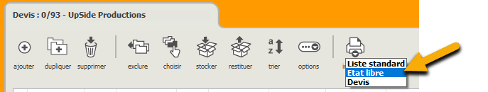 A partir des listbox comme le "devis", rechercher des fiches et créer un nouvel état libre :