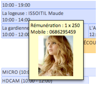 Il est possible de glisser des rubriques de type image mais uniquement dans les bulles d’aide. Cela permet par exemple d’afficher la photo des personnes affectées à une réservation directement dans la bulle affichée dans le planning :
